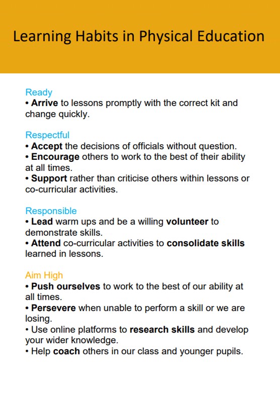 Our curriculum leaders have identified specific learning habits that are required to be successful in each subject. These are displayed in each teaching room, and below.