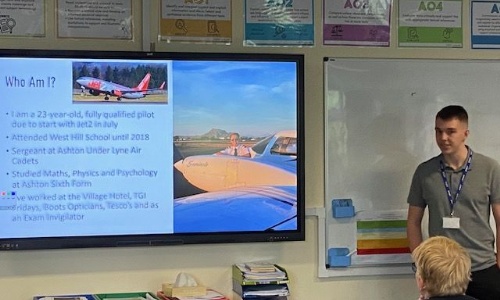 Ethan spoke to some of our Year 8 students yesterday about his career pathway and employment as a Pilot. Taking our school motto 'Aim High' literally.